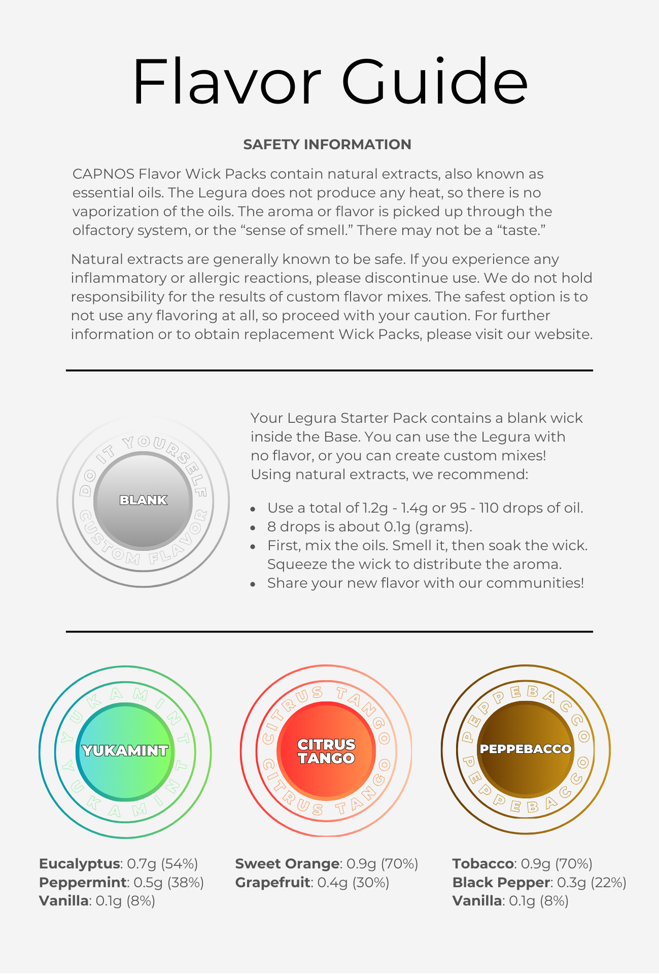 - 3x Flavor Packs (Yukamint, Orange Citrus, Peppebacco)